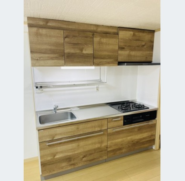 3口コンロ付きのシステムキッチン!料理好きな方も同時調理で時短できます。収納もたっぷり。